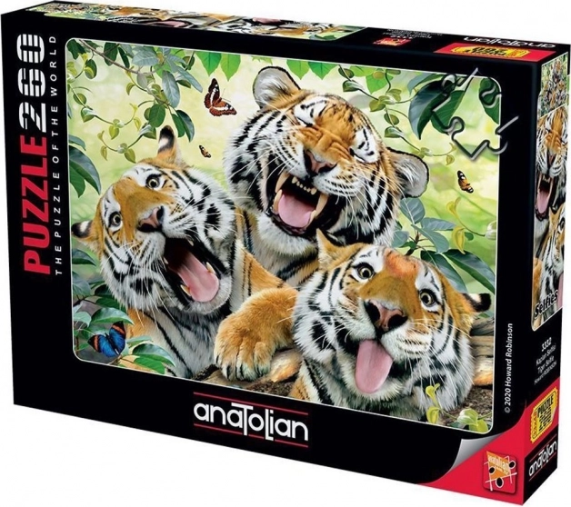 Dieses fantastische Puzzle der Marke Anatolian bietet eine effektive Möglichkeit, sich zu entspannen und die Freizeit zu genießen. Das Bild des Tigers, eingefangen im komischen Selfie-Ausdruck, fasziniert nicht nur Kinder, sondern auch Erwachsene. Es ist eine großartige Möglichkeit, Konzentration und Geduld zu stärken.