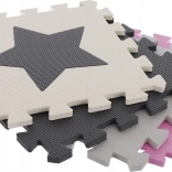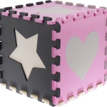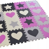 Das Schaumstoff-Puzzle mit leicht gerippter Oberfläche ist ideal als Spielteppich für Kinderzimmer, Spielzimmer oder Wohnzimmer. Die einzelnen Teile können beliebig zusammengesetzt werden, um die Größe dem Raum anzupassen. Herausnehmbare Herz- und Sternformen fördern Motorik und kreatives Spielen.