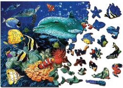 Entdecken Sie cleveren Puzzlespaß mit einem Holzpuzzle, das mit einem detailreichen Unterwassermotiv erfreut und durch seine beidseitige Ausführung begeistert. Sie können nach dem Motiv auf der Vorderseite oder nach dem wiederkehrenden Muster auf der Rückseite puzzeln – ideal zum Trainieren von Konzentration und räumlicher Vorstellungskraft.