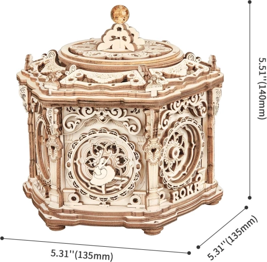 Erleben Sie die Schönheit der Renaissance mit dieser detaillierten 3D-Puzzle Spieluhr von RoboTime. Die kunstvoll eingelegten Verzierungen dieser Schatulle verzaubern jeden Betrachter. Die Spieluhren bieten eine Vielfalt an Designs, sowohl in natürlichen als auch in farbenfrohen Ausführungen, mit kreativen beweglichen Details, die von Musik begleitet werden. Nach der Montage wird sie ein beeindruckendes Dekoelement auf Ihrem Regal darstellen. Genießen Sie vertraute Melodien, wobei jede Schatulle eine zur Optik passende Melodie spielt.