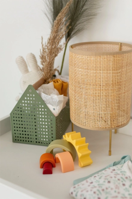 Das Stapeln der fünf bogenförmigen Teile stärkt den Griff, die Hand-Auge-Koordination und die ersten Bau-Fähigkeiten des Kindes.