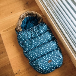 Praktische Details erleichtern den Alltag: Der Fußsack hat universelle Klettschlitze für 2-, 3- und 5-Punkt-Gurte, eine abnehmbare Kapuze für extra Wärme und lässt sich komplett öffnen und als Unterlage im Kinderwagen verwenden. Pflegeleicht – Waschen bei 30 °C – schont Zeit und Materialien.