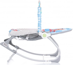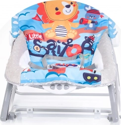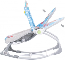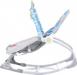 Praktische und bequeme 2-in-1 Vibrationsliege für Babys ab der Geburt, die sowohl als Wippe als auch als Stühlchen dient. Bietet sanfte Vibrationen, angenehme Melodien, eine verstellbare Rückenlehne und einen Bogen mit hängenden Spielzeugen zur Förderung der Motorik und für Unterhaltung. Für Sicherheit sorgen ein 3-Punkt-Gurt und eine stabile Konstruktion.