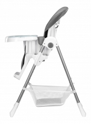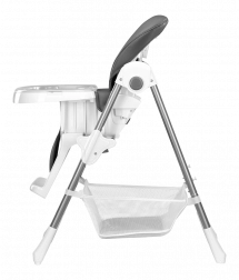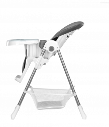 Praktische Details für den Alltag: zwei abnehmbare Tabletts (größeres für Mahlzeiten, kleineres als Schutz des Sitzes) sind spülmaschinengeeignet. Den Bezug aus Kunstleder wischen Sie einfach mit einem feuchten Tuch ab. Ein großer Korb unter dem Sitz fasst Spielzeug und Zubehör, Rollen erleichtern das Umstellen und Anti-Rutsch-Pads erhöhen die Stabilität.