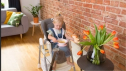 6 Sitzhöhen, 3 Rückenlehnenpositionen und eine 3-stufige Tablettverstellung sorgen für Komfort von den ersten Beikostmahlzeiten bis zum selbstständigen Essen.