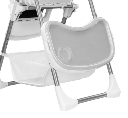 Nach dem Essen klappen Sie den Hochstuhl mithilfe von zwei Tasten leicht auf eine kompakte Breite von ca. 30 cm zusammen und verstauen ihn hinter dem Schrank oder in der Speisekammer. Die ideale Wahl für Haushalte, die eine funktionale, sichere und pflegeleichte Lösung suchen.
