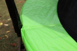 Die Einstiegöffnung mit Reißverschluss und die innere Position des Netzes verhindern Landungen im Bereich der Federn. Die gepolsterte Ummantelung der Stangen erhöht den Schutz bei Bewegung.
