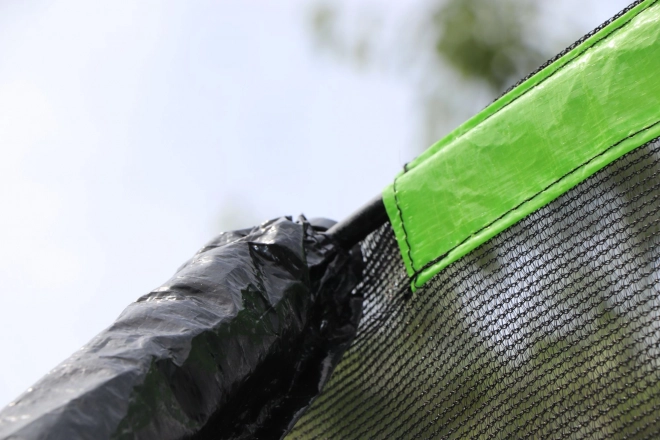 Der robuste Rahmen aus verzinktem Stahl, die PP-Sprungmatte und das hochwertige PE-Netz gewährleisten Wetterbeständigkeit und langfristige Zuverlässigkeit. Enthalten ist eine Metallleiter für den bequemen Einstieg sowie elliptische Stangen mit Schaumpolsterung für zusätzliche Netzstabilität.