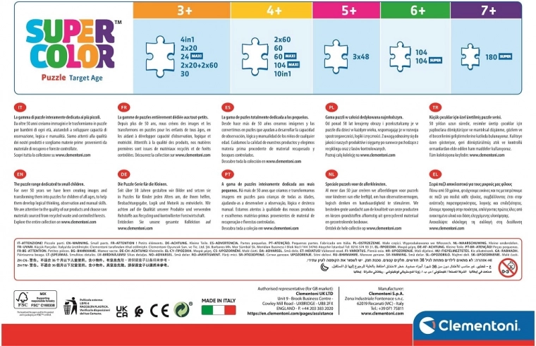 Puzzles von Clementoni zeichnen sich durch präzise Stanzungen, satte Farben und hochwertiges Papier aus. Das fertige Bild können Sie wieder auseinandernehmen und neu legen oder rückseitig fixieren und als originelle Deko fürs Kinderzimmer verwenden.