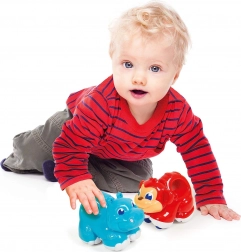Einfach aufziehen und das Nilpferd fährt los. So entdecken Kinder das Prinzip von Ursache und Wirkung und trainieren ihre Koordination.