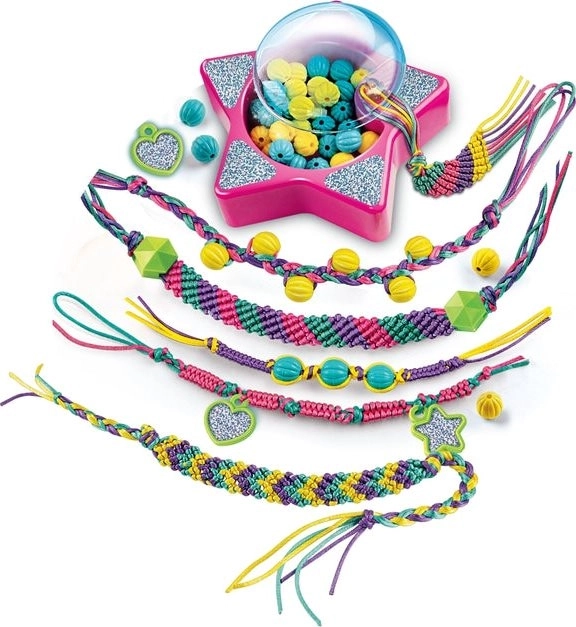 Set zur Herstellung bunter Freundschaftsarmbänder, die elegant und modisch sind! Das Set enthält ein spezielles Werkzeug zum Flechten von Armbändern mit bunten Fäden und Perlen. Die Kreationen können mit vielen farbenfrohen Perlen verziert werden! Eine spielerische Aktivität, die man auch mit Freunden machen kann und die garantiert Spaß macht.
