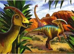 Die Puzzles enthalten farbenfrohe Illustrationen von Dinosauriern in einer prähistorischen Umgebung, die die Aufmerksamkeit der Kinder erregen und ihre Vorstellungskraft erweitern.