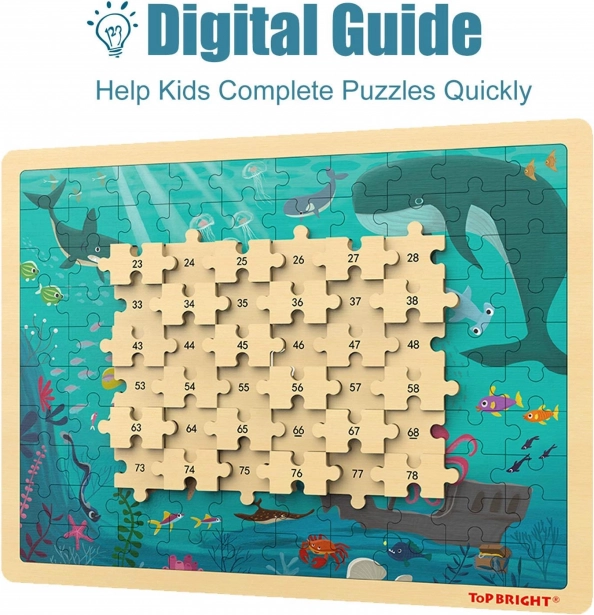TOP BRIGHT Holzpuzzle Meereswelt bietet Spaß und fördert die kindliche Fantasie mit 100 Teilen auf einer stabilen Platte, die als Unterlage dient.
