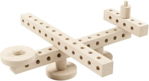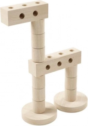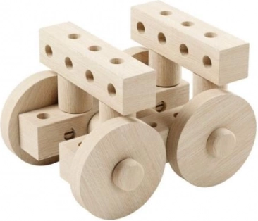 Enthält Buchenholzrollen mit einem Durchmesser von 32 mm, Balken und Räder mit Löchern, die unbegrenzte Kreativität und die Entwicklung der Feinmotorik fördern.