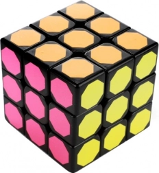 Dieser Rätselwürfel kommt mit einem einzigartigen Design, das mehrfarbige sechseckige Aufkleber auf einer schwarzen Kunststoffbasis umfasst. Ideal für geistige Übungen und Spaß.