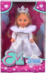 Puppe Evi Love ist der ideale Begleiter für Ihr Kind, gekleidet als Märchenprinzessin in fantastischen Winterkleidern mit einem flauschigen Kragen und glitzernden Elementen.