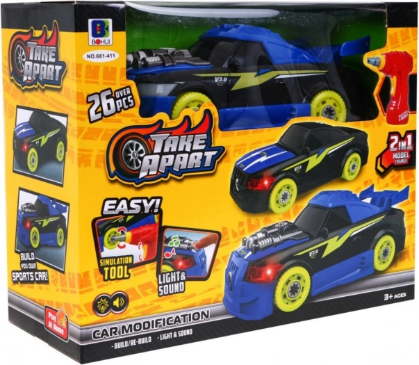Autos zum Zusammenbauen 2-in-1 für Kinder 3+ Elektrischer Schrauber + Schraubendreher + Geräusche Lichter