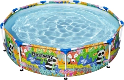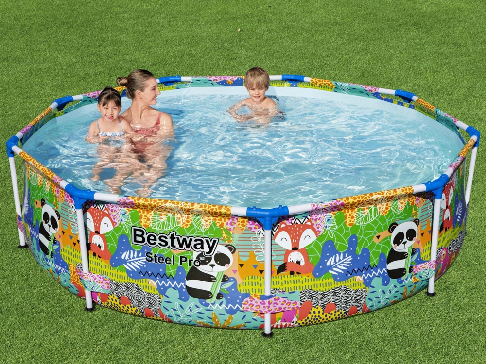 Die ideale Wahl für kleinere Gärten, Höfe oder Terrassen: Der runde Rahmenpool von BESTWAY mit einfacher Montage bringt Erfrischung und jede Menge Spaß für Kinder und Eltern. Der stabile Stahlrahmen und die hochwertigen, weichen Wände mit fröhlicher Tiergrafik schaffen eine sichere Umgebung für Wasserspiele.