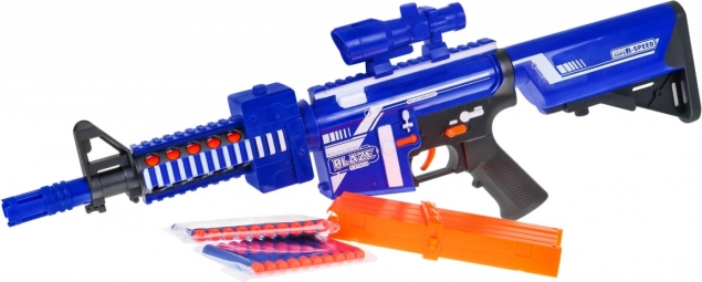 Genießen Sie Action mit dem batteriebetriebenen Kinder-Blaster BLAZE STORM. Der vollständig elektrische Antrieb sorgt für einen gleichmäßigen Lauf und stabile Leistung; jeder Abzugsdruck feuert einen Dart ab. Der lange Lauf mit zwei stabilisierenden Rollen hilft, die Flugbahn zu halten, und das abnehmbare taktische Visier erleichtert das Zielen.