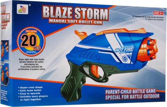 Entdecken Sie actionreichen Spaß mit der Kinderpistole BLAZE STORM Hot Fire. Dieser leichte und robuste Blaster in Blau-Orange nutzt ein manuell gespanntes Federsystem, mit dem Kinder sicher Zielgenauigkeit und Koordination trainieren. Das einfache vordere Laden und der Einzelschuss sorgen für zuverlässigen Betrieb ganz ohne Batterien.