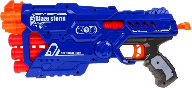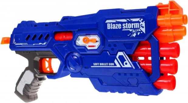 Der Blaster BLAZE STORM ist eine hervorragende Wahl für sicheres und spannendes Spielen. Dank des manuellen Spannmechanismus ist die Bedienung einfach und zuverlässig – laden Sie die Pfeile in die 6 Läufe, spannen und drücken Sie den Abzug. Mit dem Modusschalter wählen Sie, ob Sie kleinere blaue oder größere rote Geschosse abfeuern.