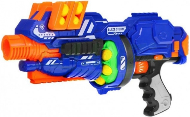 Die ergonomische Konstruktion mit Trommelmagazin für 8 Schuss und Halterungen für Ersatzmagazine an den Seiten des Laufs sorgt für schnelles Nachladen. Die Schaumstoffkugeln sind leicht und weich, was sie zur idealen Wahl für Kindergefechte macht.
