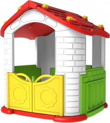 Alle Teile des Hauses bestehen aus einer doppelten Schicht Kunststoff, was die Möglichkeit bietet, die Wände für mehr Stabilität zu füllen. Große Komponenten erleichtern die Montage, die jeder geschickte Elternteil bewältigen kann.