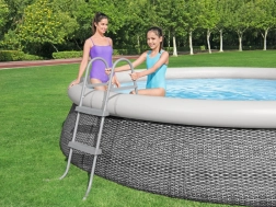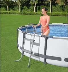 Sichere und stabile Metallpoolleiter Bestway ist ideal für Aufstellpools bis zu einer Höhe von 84 cm. Sie hat zwei rutschfeste Stufen, die den Zugang zum Pool einfach und bequem machen.