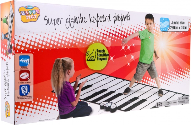 Abmessungen der Matte: 260 x 74 cm. Verpackungsmaße: 86 cm x 40 cm x 11 cm. Das Spielzeug ist für Kinder ab 3 Jahren geeignet und wird mit 4 AA-Batterien betrieben (nicht im Lieferumfang enthalten).