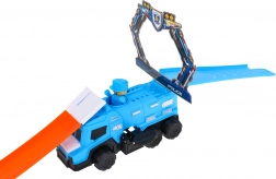Baue deine eigene Adrenalin-Strecke im Polizeidesign und schicke die Autos durch zwei große Loopings mit vollem 360°-Umschwung. Die leistungsstarke Abschussvorrichtung sorgt für die nötige Geschwindigkeit, und der große Polizeisattelzug wird zum Zentrum jeder Verfolgungsjagd. Das Spezialauto wechselt beim Eintauchen die Farbe – so bietet jede Fahrt neue Effekte und Geschichten.