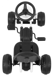 Dieses kompakte Tret-Gokart wurde für die kleinsten Kinder entwickelt. Dank des geringen Gewichts von 3,8 kg lässt es sich leicht handhaben, während der Kettenantrieb mit Vollabdeckung Sicherheit und einen sanften Vortrieb gewährleistet. Der Gummiring an den Rädern dämpft Vibrationen und erhöht die Bodenhaftung auf Gehwegen und im Garten.
