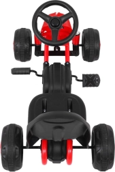 Dieses kompakte Tret-Gokart wurde für kleine Kinder entwickelt, damit sie ihre ersten Fahrten im Freien sicher genießen können. Dank der robusten Konstruktion, des geringen Gewichts und der Gummilaufflächen der Räder bietet es eine sanfte und leise Fahrt auf verschiedenen Untergründen.