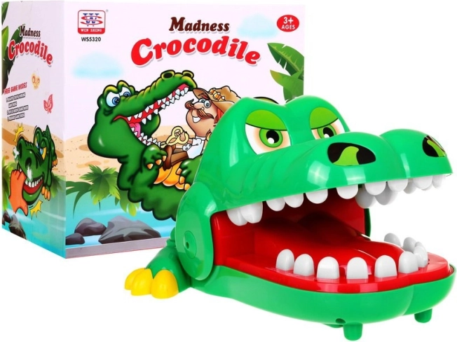 | Das Krokodil öffnet mutig sein Maul und wir sehen eine Reihe schöner, gerader Zähne – leider ist einer davon schmerzhaft. Dafür drücken wir mit dem Finger nacheinander auf einen beliebigen Zahn (bei mehreren Spielern reihum). 3 SPIELVARIANTEN: 1. SCHMERZHAFTER ZAHN - roter Knopf – aktiviert die erste Spielvariante. - nach dem Drücken starten wir das Spiel: Wir drücken Zahn für Zahn ... Wenn du den schmerzenden Zahn erwischst, beißt dich das Krokodil! Das bedeutet Niederlage. 2. REAKTIONSSPIEL: - drücke den Zahn, der orange leuchtet, - drücke schnell die Zähne, die nach und nach aufleuchten, die Geschwindigkeit des Aufleuchtens nimmt zu, - wenn zwei Zähne gleichzeitig leuchten, versuche sie so schnell wie möglich nacheinander zu drücken, - wenn du dreimal falsch drückst, schließt das Krokodil sein Maul, du hast verloren, das Spiel endet. - am Ende des Spiels entspricht die Anzahl der leuchtenden Zähne deinem Reflexniveau. 3) GEDÄCHTNIS: - drücke den grün leuchtenden Zahn, - merke dir die leuchtenden Zähne, - wenn das Krokodil fragt „Welcher Zahn tut weh?“, drücke die gemerkten Zähne, - du kannst es erneut versuchen, wenn deine Antwort richtig ist, - die Anzahl der leuchtenden Zähne wird steigen und die Leuchtdauer wird immer kürzer. - wenn du falsch antwortest, schließt das Krokodil sein Maul und beißt dir in den Finger. | ||