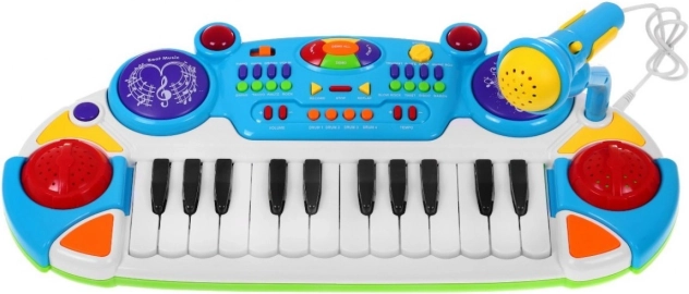 Blaues Musikset mit Tasten und Mikrofon für Kinder ab 3 Jahren Lichter und Klänge 2 Oktaven