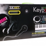 Im Lieferumfang sind ein Mikrofon und ein Netzadapter enthalten. Das Keyboard kann für unterwegs auch mit Batterien betrieben werden.
