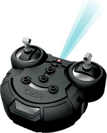 Die Fernsteuerung mit zwei Joysticks ermöglicht präzises Steuern ohne Störungen. Eine Reichweite von bis zu 25 m und eine Geschwindigkeit von etwa 6,3 km/h sorgen für jede Menge Action.
