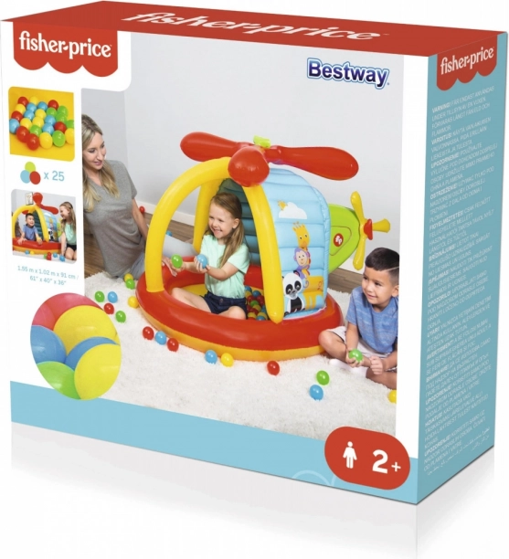Dieser farbenfrohe aufblasbare Hubschrauber schafft einen weichen und sicheren Spielbereich. Kinder genießen interaktive Elemente wie zwei abnehmbare Rotorblätter, die sich von Hand drehen lassen, und 25 leichte Kunststoffbälle. Ein verspielter Druck mit FISHER-PRICE-Tiermotiven fördert die Vorstellungskraft und die Freude am Entdecken.
