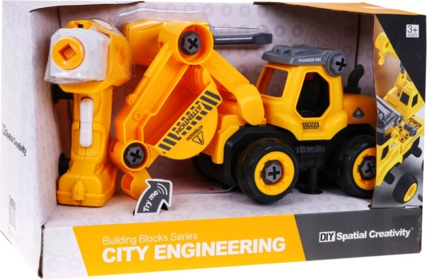Abschraubbarer Bagger mit Antrieb für Kinder 3+ Elektrischer Schraubendreher + Antriebsmodul + Geräusche