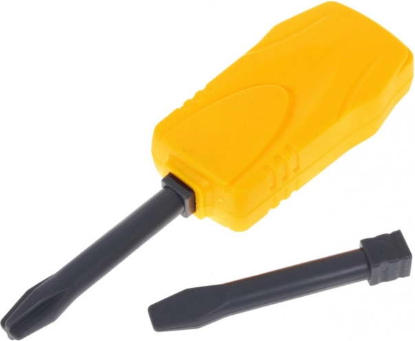 Das Spielzeug verfügt über Soundeffekte (Fahrgeräusch und Hupe – Bagger, Bohrgeräusch – Bohrmaschine).