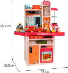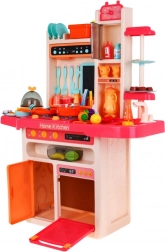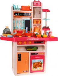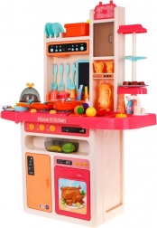 Kinderküche mit Wasserhahn und Dampf-Kochfeld, Audiopanel, 65 Teile – Rosa
