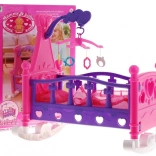 Diese stylische Kinderwiege für Puppen kombiniert 2 Nutzungsmodi – sie kann auf 4 Beinen als Bett stehen oder sanft als Wiege schaukeln. Enthalten ist ein fröhliches Mobile mit Hängeelementen und Soundeffekten, die Fantasie anregen und die Sinne fördern.