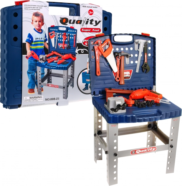 Werkstatt-Set 2-in-1 für Kinder ab 3 Jahren Tragbarer Koffer und Arbeitstisch mit Werkzeug