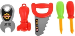Enthält verschiedene Werkzeuge wie Schraubenschlüssel, Hammer, Säge und Schraubendreher. Jedes Teil ist in lebhaften Farben gehalten für noch mehr Spielspaß.