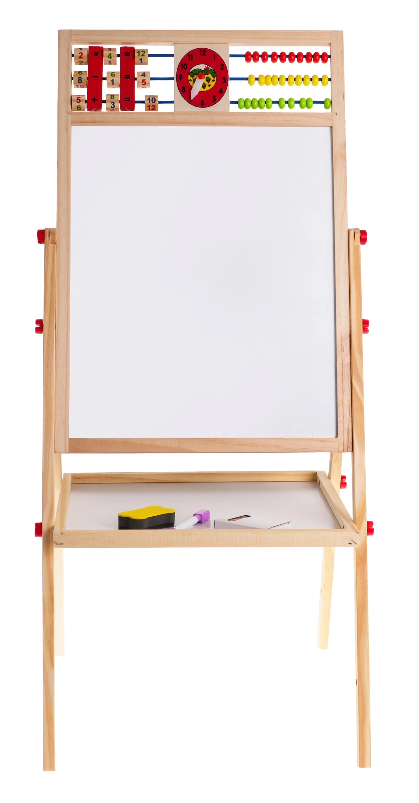 Diese stabile Holztafel verbindet kreatives Zeichnen mit cleverem Lernen. Die weiße Seite ist magnetisch für das Schreiben mit abwischbarem Marker und für das Arbeiten mit Magneten, die schwarze Seite eignet sich für klassisches Zeichnen mit Kreide. Dank der höhenverstellbaren Beine lässt sie sich leicht an Kinder unterschiedlichen Alters anpassen und wächst mit ihnen mit.