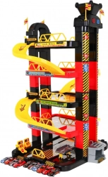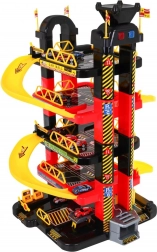 Das Kinderparkhaus bietet eine aufregende Spielfläche mit fünf Ebenen, die über einen Aufzug und Rutschen zugänglich sind. Die unterste Etage verfügt über eine Autowaschanlage, eine Autowerkstatt und eine Tankstelle. Die weiteren Ebenen dienen als Parkbereich für Autos, während ganz oben ein Hubschrauberlandeplatz mit einem beweglichen Aufzug mit Lichteffekten ist, betrieben durch drei AA-Batterien (nicht im Set enthalten).