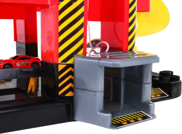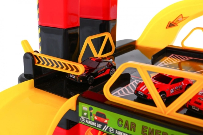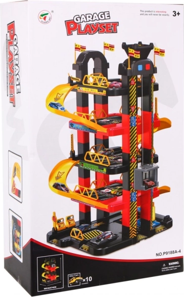 Mehrstöckiges Parkhaus mit beweglichem Aufzug und 10 Rennwagen