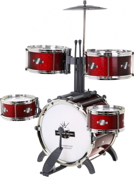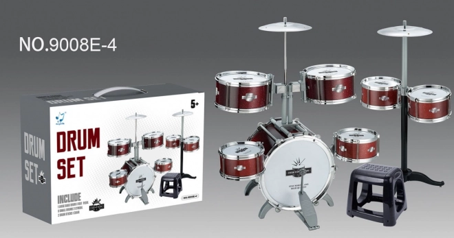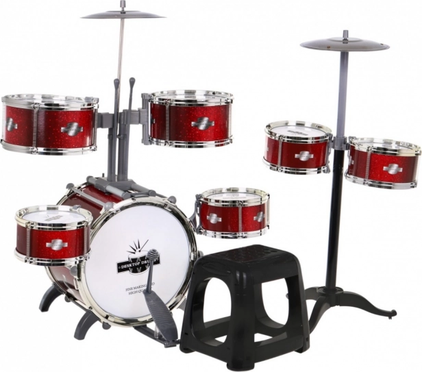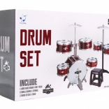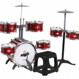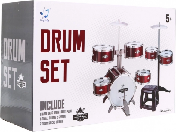 | - große Basstrommel mit Fußpedal, - zwei mittlere Trommeln, - 4 kleinere Trommeln, - 2 Sticks, - Hocker. | |||