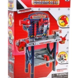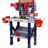 | - Werkbank, - Schraubstock, - Schraubendreher, - Hammer, - Säge, - Metallsäge, - Winkelmesser, - Zange, - 2 x Schraubenzieher, - Schlüssel, - austauschbare Schraubkappe, - 4 x Dübel, - 8 x Schraube, - 11 x Mutter, - Schraubholz, - 8 x rechteckiges Teil zum Verschrauben, - 2 x Werkzeugbox. | |