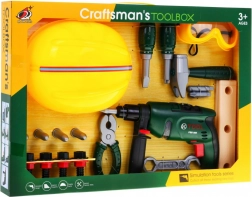 Kleiner Baumeister-Set für Kinder 3+ Elektrischer Schraubendreher + Helm und Brille + Werkzeug