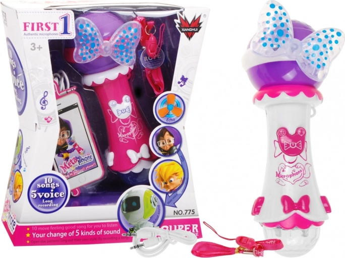 Dieses Kinder-Mikrofon bringt jedes Bühnenprogramm zum Strahlen. Es verfügt über einen großen Lautsprecher für klaren Klang, zwei auffällige LEDs (Schleife und große Kugel), die bunte Lichteffekte erzeugen, sowie 10 integrierte Melodien für sofortigen Spaß. Dank der Funktion zum Aufnehmen und Abspielen können Kinder ihre musikalischen Momente festhalten.